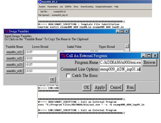 SmartScripting 為智慧形 Tcl/Tk 程式碼產生器,內建常用功能表列,用戶在對話框中填入資料即可自動產生特定功能之 Tcl/Tk Script,透過 SmartScripting 用戶可以更輕鬆,更精確地使用 SmartDO 的可程式功能,並且充份瞭解 SmartDO 的運作細節,如:設計變數檔取代置換、呼叫外部程式、刪除檔案、開啟/關閉檔案讀取、存找字串並做進一步反應、從字串中拮取數值、數學運算等常用功能。