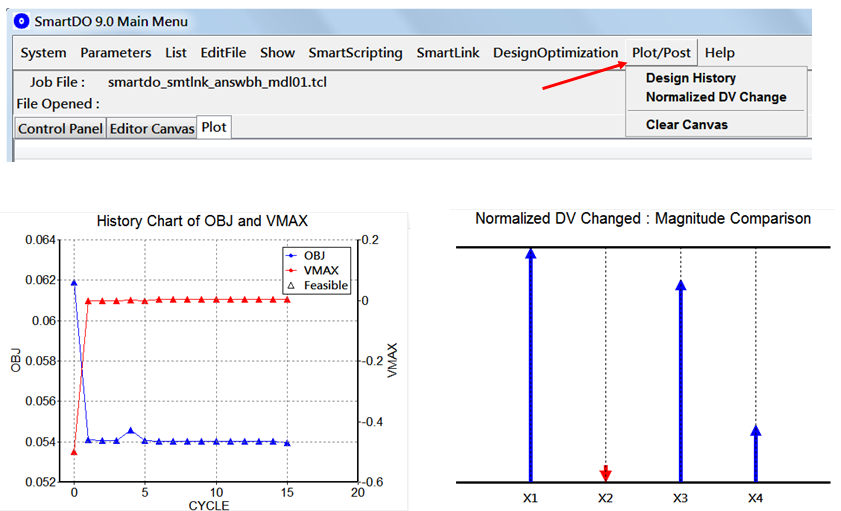 Design History Plot可繪出不同參數在設計過程的變化例程(如Objective,Design Variables)。藉由比對不同參數的變化,可瞭解其間的互動關係。 除此以外並可瞭解收斂情況。