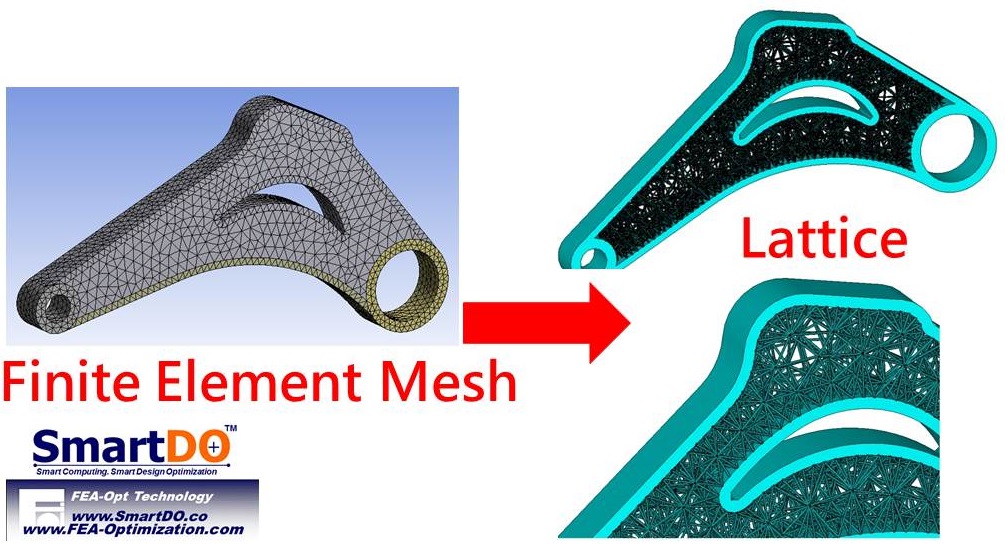 SmartLattice模組使用現有ANSYS Workbench,單鍵產生晶格結構,直覺且易於控制。晶格之相關參數,如晶格密度與晶柱直徑等, 可與SmartDO串聯,針對重量與強度進行最佳化。晶格之結果可以STL格式輸出, 可直接用於3D列印。本模組獲經濟部SBIR獎助開發,目前已申請專利中。